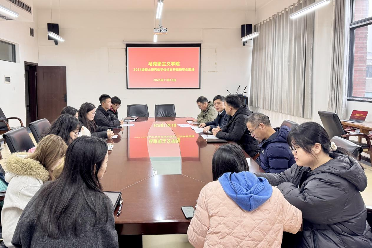 2025年11月18日,贵州财经大学马克思主义学院在文德楼418会议室成功举办硕士研究生学位论文开题预审会。马克思主义学院副院长(主持工作)和思鹏教授、马克思主义基本原理导师组组长王凤祥教授、马克思主义中国化研究导师组组长胡刚教授、思想政治教育导师组组长吕海滨教授、中国近现代史基本问题研究导师组组长王尤清教授,以及2024级全体研究生参会。会议由学院副院长吕海滨教授主持。