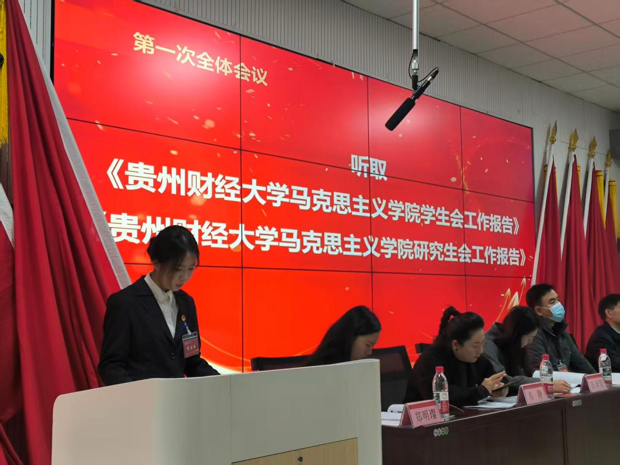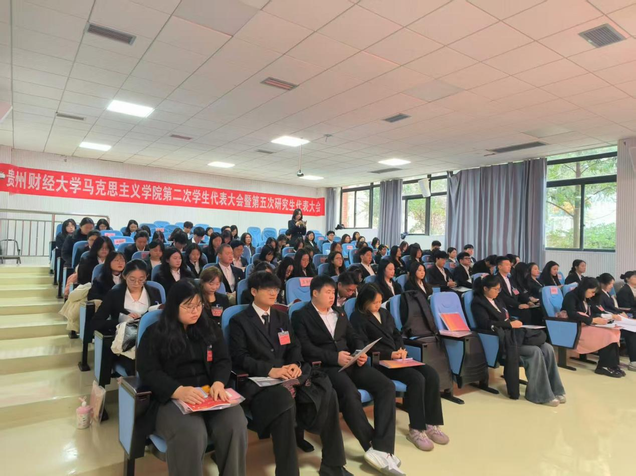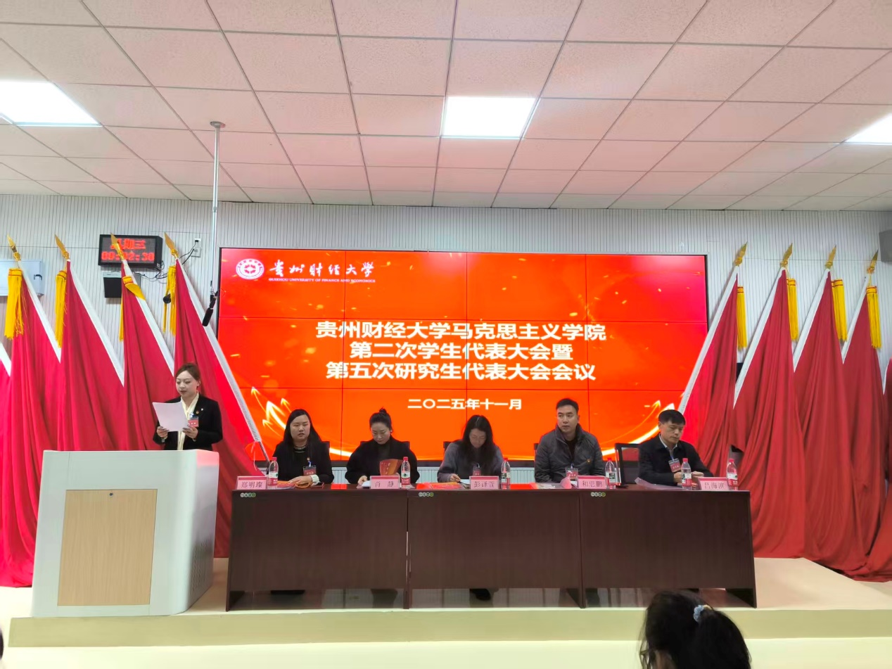 2025年11月19日,贵州财经大学马克思主义学院第二次学生代表大会暨第五次研究生代表大会在乐学楼101会议室召开。校团委副书记彭译萱,学院副院长(主持工作)和思鹏、党委副书记肖静、院副院长吕海滨、团总支负责人郑明璨出席大会,学院学生代表齐聚一堂,共商学生工作发展。大会由于子曈同学主持。