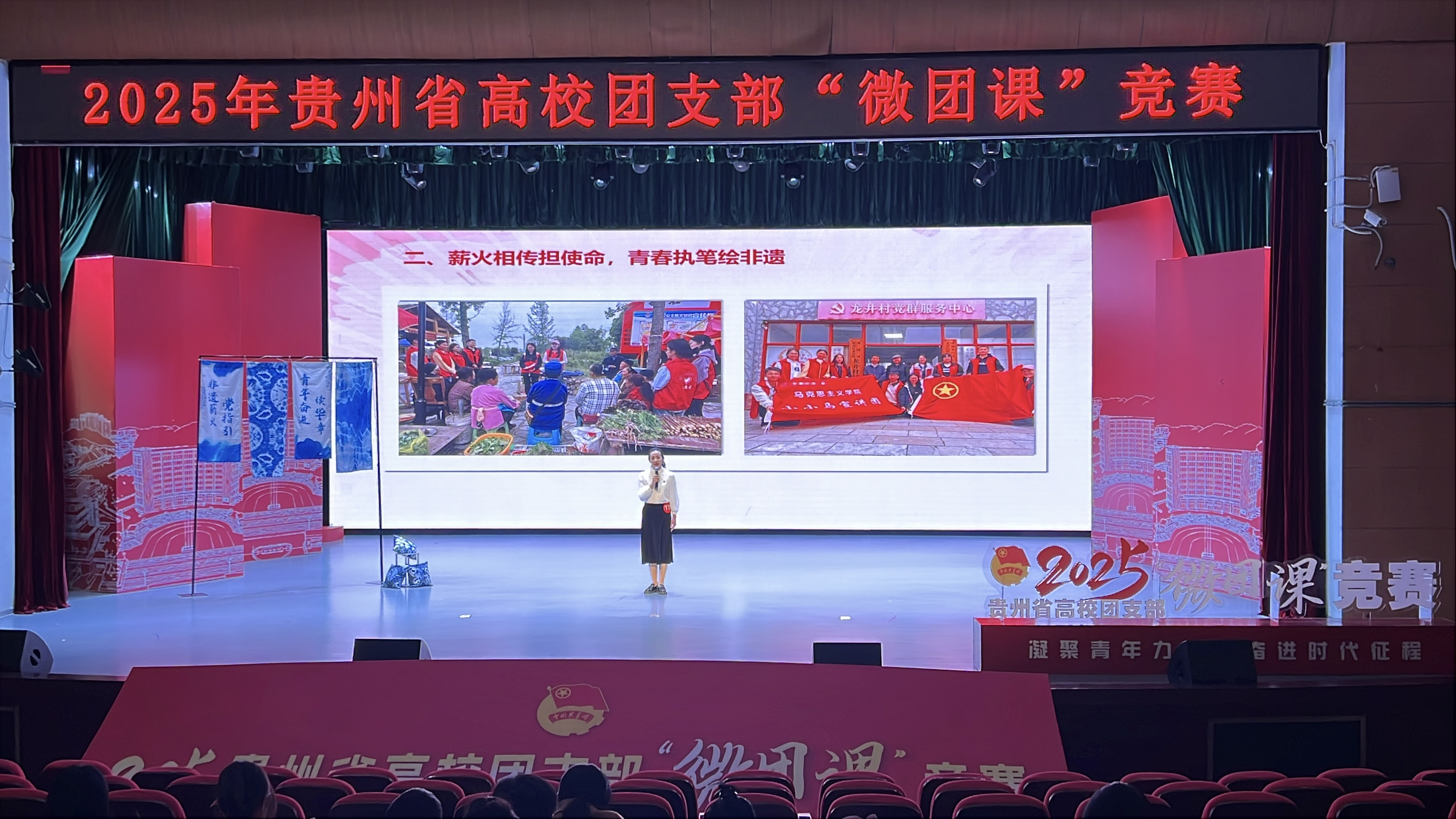 本次获奖作品以 “非遗薪火党指引 青年奋进续华章” 为主题,深度融合了支部与龙井村团支部结对共建的实践成果。同学们以国家级非物质文化遗产——布依族蜡染为鲜活案例,通过一场精彩的“时空对话”,生动演绎了在党的指引下,青年一代如何传承文化薪火、勇担时代使命,其生动的演绎与深刻的立意赢得了现场评委的一致好评。