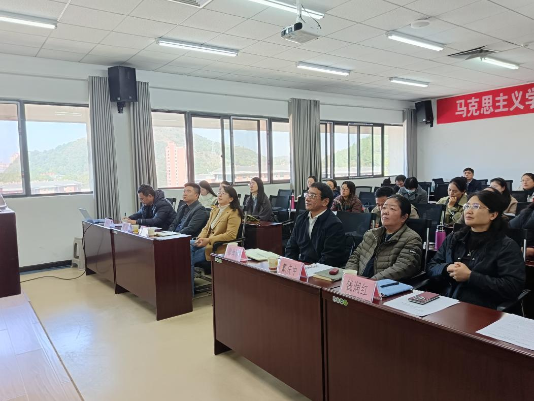 2025年11月25日下午,马克思主义学院在文德楼512会议室举行《思想道德与法治》课程“弘扬和践行社会主义核心价值观”专题集体备课会。校党委书记缪坤和、校党委副书记李娅、教务处处长蒋馨岚、高评中心主任钱润红、校督导团副团长戴庆中一行深入教学一线,与马克思主义学院专兼职思政课教师及学生代表共同交流研讨。集体备课会由马克思主义学院副院长(主持工作)和思鹏主持。