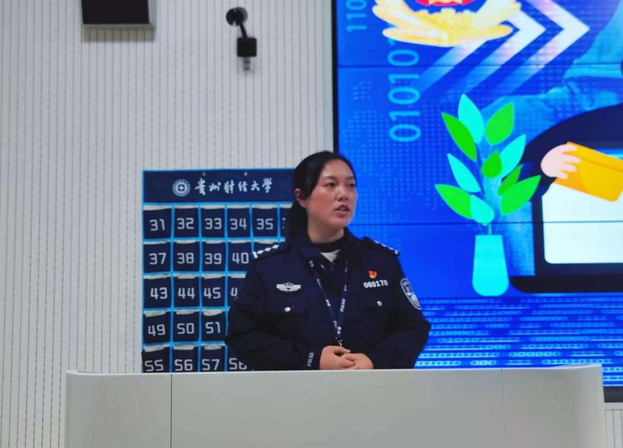 为切实提升师生防范电信网络诈骗的意识和能力,共同筑牢校园安全防线,2025年12月2日下午,我校党委保卫工作部与马克思主义学院联合邀请贵安新区公安局刑侦支队刑事技术室主任聂周璐警官,在乐学楼101教室举办了反诈宣传教育专题讲座。马克思主义学院全体学生参加了此次学习。