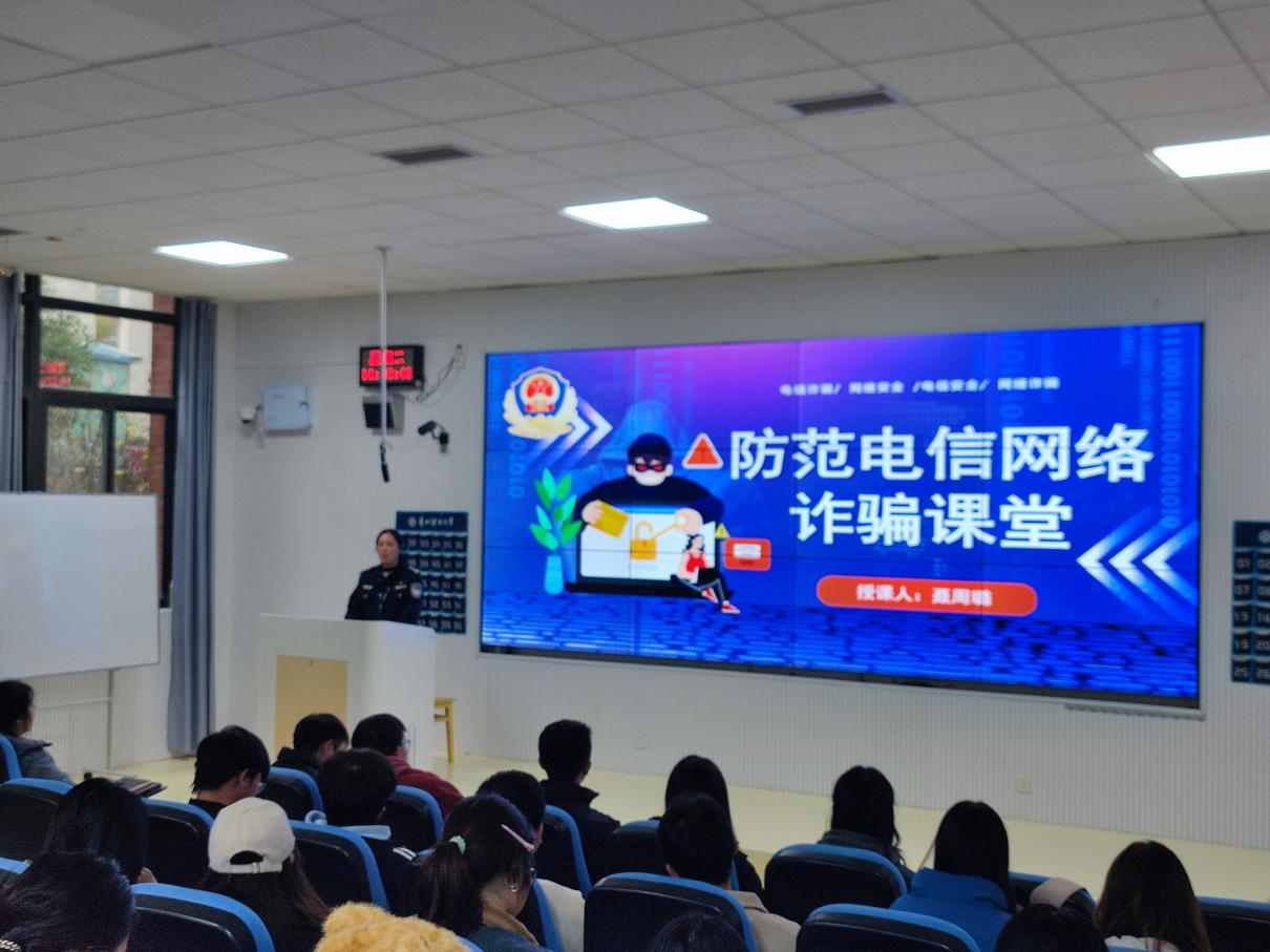 讲座中,聂周璐警官紧密结合当前高校高发的诈骗案件类型,通过真实案例解析、诈骗手法揭秘、互动问答等形式,深入浅出地讲解了刷单返利、冒充客服、网络贷款、虚假交易等常见诈骗手段的特点及防范要点。她特别提醒师生,务必保护好个人隐私信息,对陌生来电和不明链接保持高度警惕,遇到任何可疑情况应立即向公安机关报警,切实增强自身对电信诈骗的识别和抵御能力。